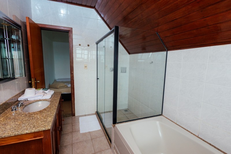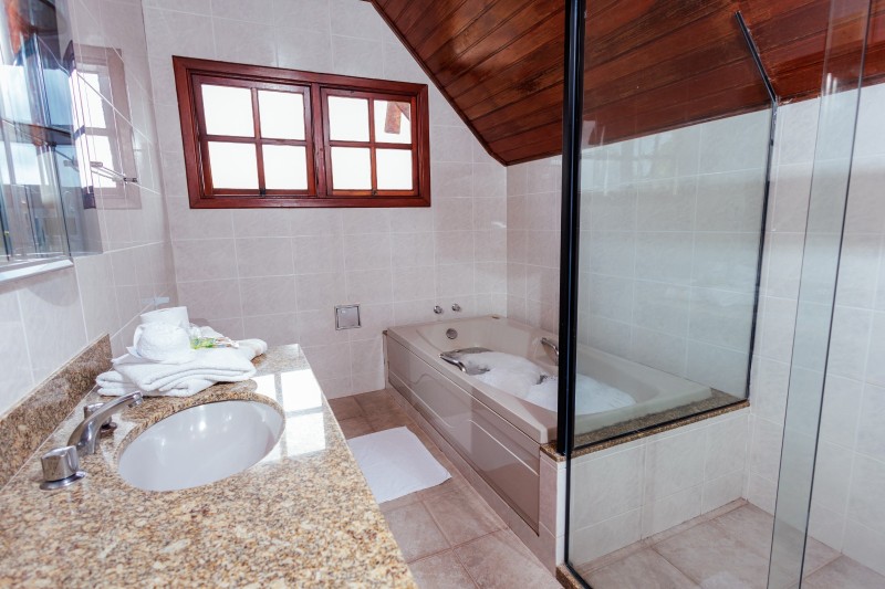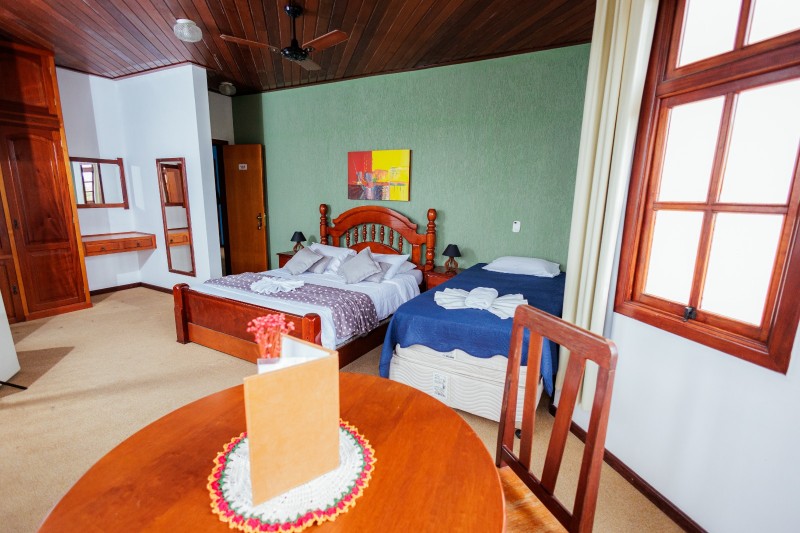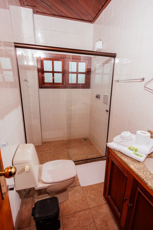 As torres são equipadas com ventilador de teto, enquanto a varanda da frente e varanda fundos dispõe de ventilador de chão portátil. A acomodação oferece ainda frigobar, TV e mesa com cadeiras, proporcionando maior conforto e praticidade durante a estadia.